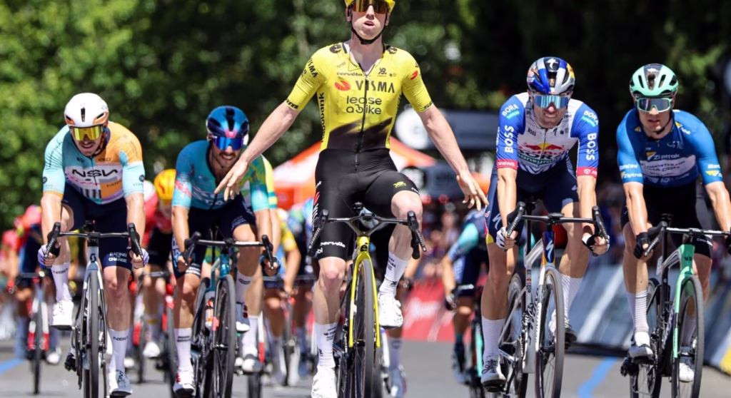 Eenkhoorn’s approach to the intermediate sprints was not subtle. He rolled through first more than once to collect bonus seconds, an important detail because the gaps behind Vine were tight enough that even small swings could change the podium fight.
