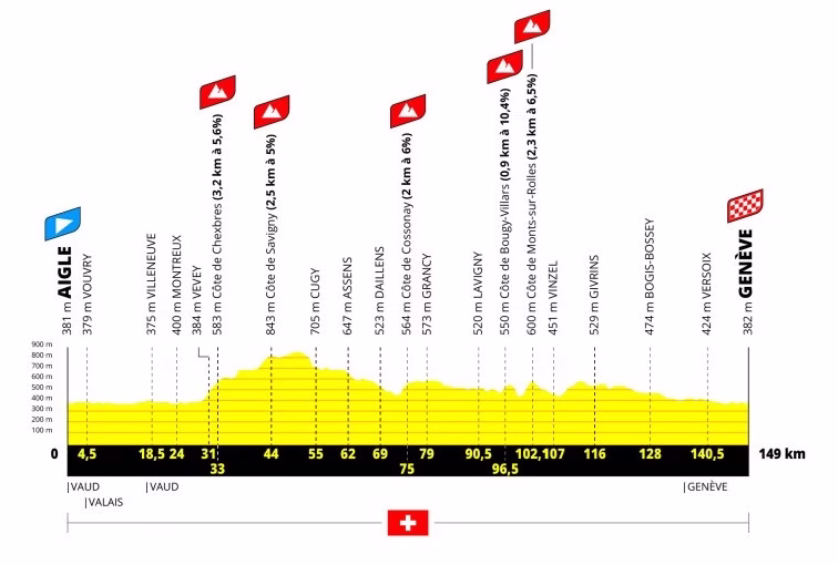 2 AugustStage 2AigleGeneva149 kmFlat stage expected to end in a bunch sprint along Lake Geneva.