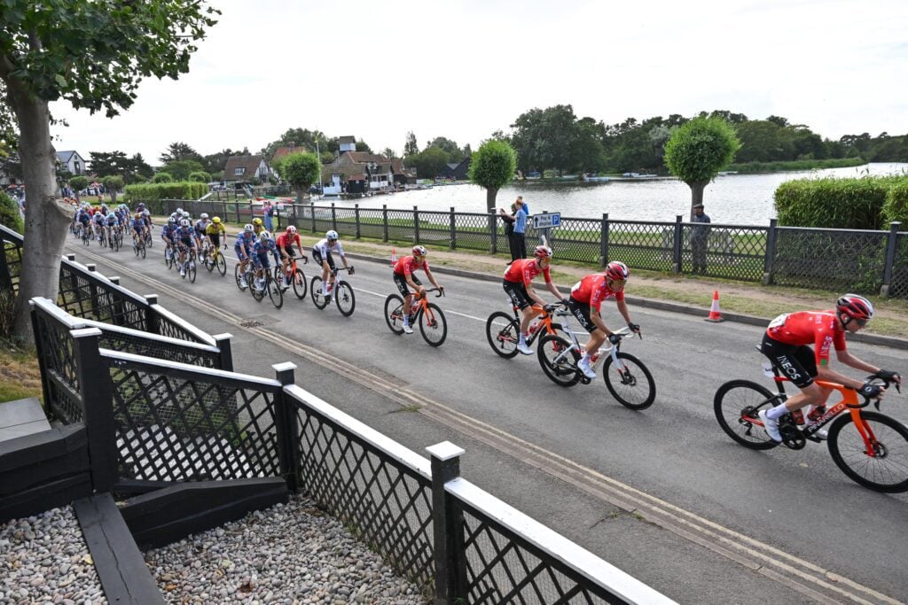 The 161.4km opener rolled out from Woodbridge under heavy skies, heading north through Suffolk to finish on the seafront in Southwold. Almost immediately a breakaway of four riders went clear: Josh Golliker of EF Education-Aevolo, Milan Lanhove and Victor Vercouillie of Team Flanders-Baloise, and Diego Uriarte of Kern Pharma. Their lead quickly stretched beyond two minutes, the peloton content to let them sweep up the early prizes. Lanhove proved the most active, taking the day’s only categorised climb at Mill Hill to earn the mountains jersey for stage 2, and also winning the intermediate sprint at Halesworth.